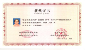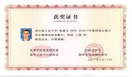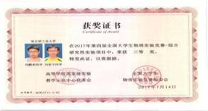 2017年7月,由高等公司国家级实验教学示范中心联席会主办的“第四届全国老员工物理实验竞赛” 在南京大学举行。哈工大物理系组队参加了综合研究类和基础类的全部比赛项目,获得综合研究类实验比赛三等奖。