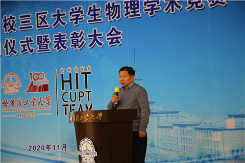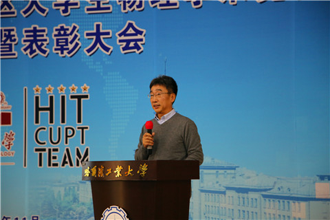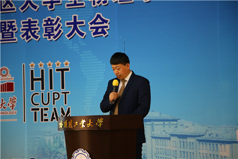 活动第四项,本科生院教务处副处长刘洪臣老师致辞,刘老师代表哈工大本科生院对今年一校三区参赛同学们在CUPT竞赛中取得优异成绩表示了热烈的祝贺,对付出辛勤汗水的指导教师们表示了衷心的感谢。并且刘老师也希望一校三区的CUPT竞赛代表队同学们能再接再厉,再创辉煌