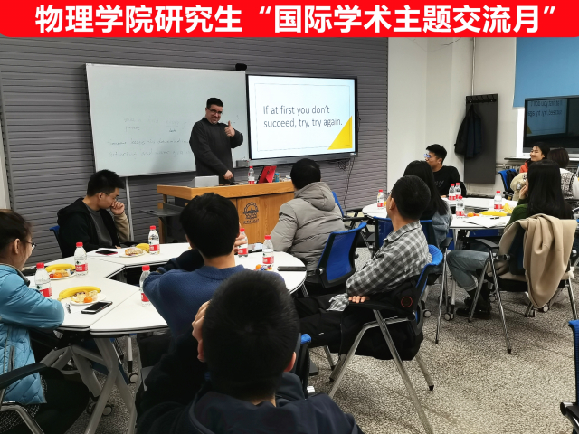 10月30日下午,beats365亚洲版官网在正心楼303举行研究生“国际学术主题交流月”第三期--“口语&听力”英文讲座活动。beats365亚洲版官网辅导员秦必达老师,外教Daniel Kevin Penistone受邀参加本次活动,本次讲座由兼职辅导员博士生周大围主持,beats365亚洲版官网硕士和博士研究生参加。