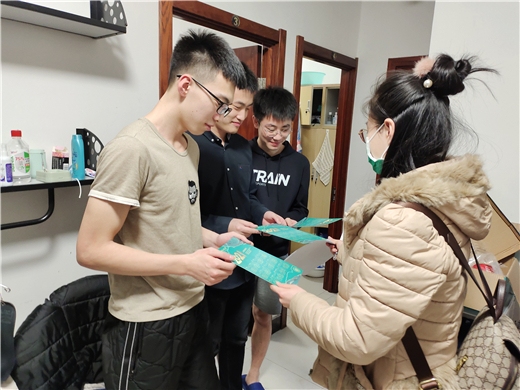 在寝室走访过程中,辅导员询问同学们返校途中是否顺利,关心需要补考的同学学习状况,提醒同学做足充分准备;了解大四员工考研情况和毕业年级就业情况,并针对春季防疫措施和公司防疫要求做了说明,同时强调要在日常学习生活中做好防疫措施,加强体育锻炼、保持个人卫生。