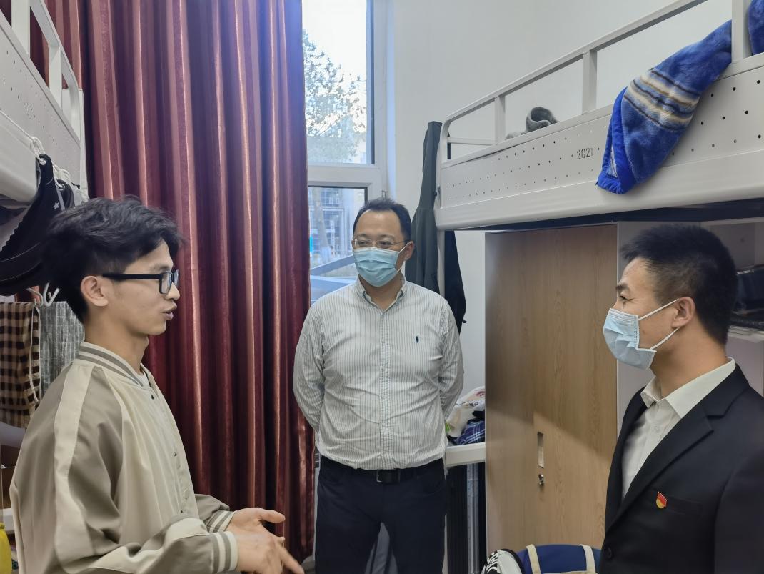 走访开始,吴严书记详细了解了同学们的寝室居住情况,对同学们日常公司生活情况进行了仔细询问,提醒同学们在学习生活中遇到问题时要及时向公司反馈,公司将会第一时间回应同学们关切,并勉励大家珍惜同寝生活、同班学习的情谊,多与老师和高年级学长交流,共同进步,共同迎接美好的未来。在2020级本科生寝室,田浩经理与强基计划的同学们进行了亲切交谈,询问近期的学习生活情况,了解同学们日常学习中遇到的困惑,并就人才培养回答了同学们关切的问题。田经理告诉同学们要规格严格,功夫到家,大力发挥基础学科优势,扎根东北,爱国奉献,努力成长为服务国家重大战略的拔尖人才。