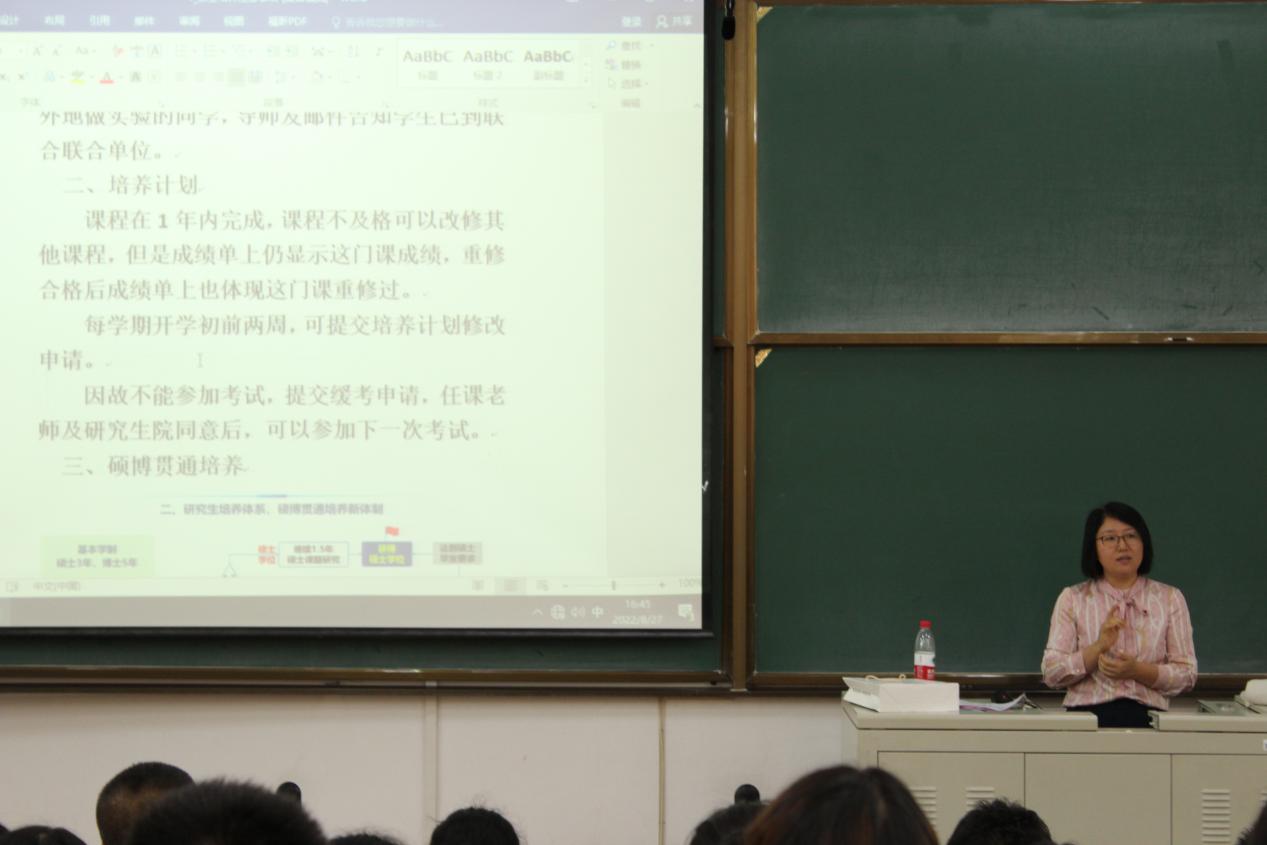 公司办公室主任、研究生教学秘书金美花老师对于改革后的公司产品计划进行详细讲解,如培养方案中课程选择、计划调整及员工毕业的要求等,说明了提前毕业、按期毕业的不同要求,提醒同学们关注校会时间合理安排毕业答辩进程。同时金老师表示,研究生也要注意课程学习,学习成绩的好坏、是否有不及格等情况将关乎到1.5年考核、成绩单打印及日常评奖评优等。