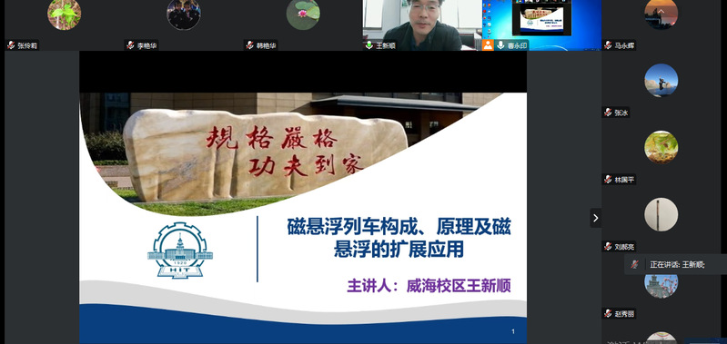 威海校区王新顺教授介绍了磁悬浮列车构成、原理以及磁悬浮的扩展应用,在磁悬浮扩展应用中他重点介绍了在校老员工设计的磁悬浮汽车、磁悬浮轮胎,对大家在教学中结合物理理论挖掘员工的创新学习有很大启发。