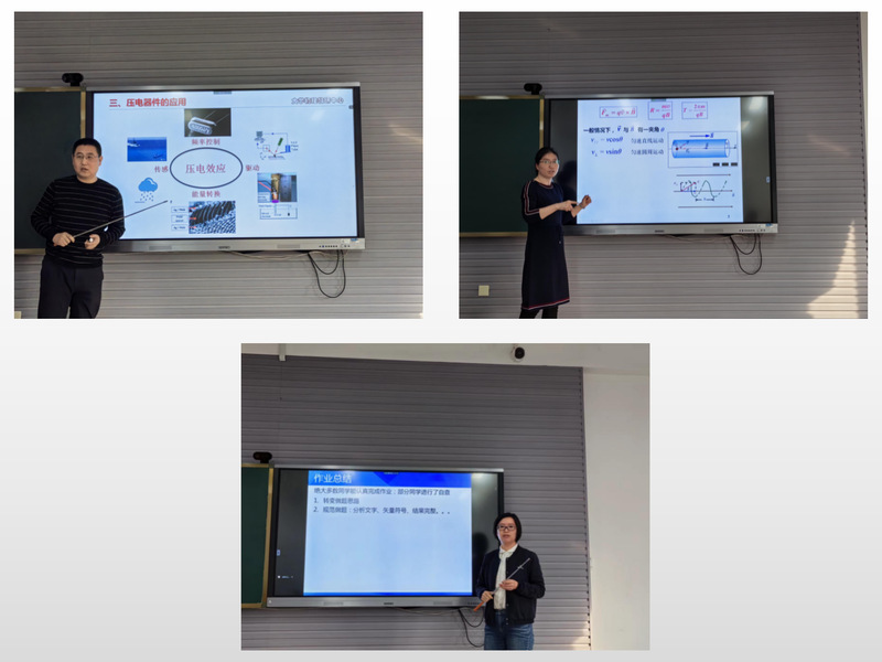 校本部裴延波副教授以电容器为切入点,进行了压电传感器的基本原理介绍,同时介绍了压电传感器在听诊器、超声波测量、以及各种传感材料中应用。张伶莉副教授分享了洛伦兹力拓展案例-----磁聚焦、磁镜,介绍了磁聚焦、磁镜的基本物理原理,并介绍了磁聚焦技术、磁约束技术在电子显微镜、可控核聚变等中应用。