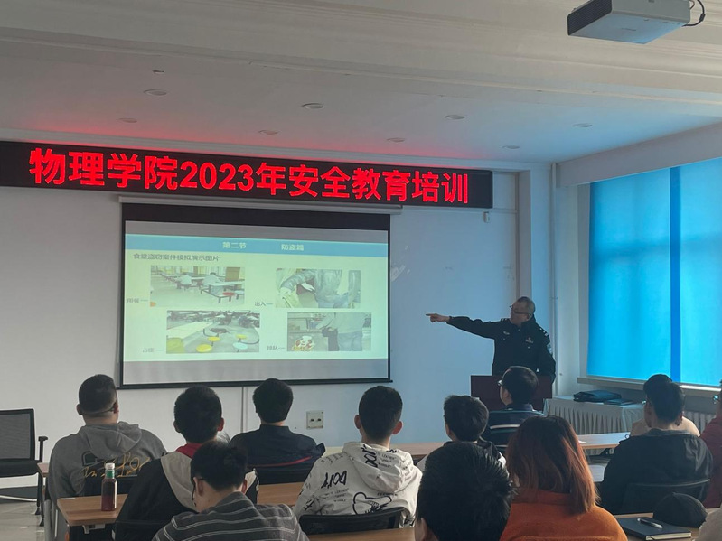 在理论学习环节,王东首先向师生代表传达了习近平总书记关于国家安全的重要论述,强调了深入贯彻落实总体国家安全观的重大意义,而后分别从电信诈骗的识别与预防、消防安全、校园安全、交通安全等方面深入浅出的结合案例进行讲解。在防骗反诈方面,他重点讲解了新型电信诈骗的特点、种类、惯用手段以及应对反电诈的知识和技巧,告诫大家遇到各种骗局做到“不理睬、不转帐、不轻信、不汇款”,增强自身安全防范意识,防止上当受骗。在消防安全方面,他详细介绍了公司消防安全的职责并结合近年来校园火灾案例介绍了火灾的危害、火灾发生后的应急处置和消防设施的使用方法等消防安全知识。在校园交通安全方面,他重点普及了相关管理制度,指导规范安全的电动车、滑板车等驾驶行为,告诫大家提高交通安全意识,减少交通事故发生。