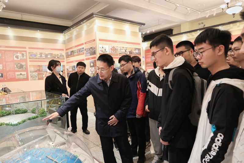 在沉浸式校内见学过程中,通过带领员工在哈工大博物馆参观学习、活动中心320座谈交流,甄良为同学们开展了一场鲜活的爱国主义教育现场教学。参观博物馆环节,甄良在开始时提醒同学们认真听讲解员的介绍、座谈时会提问,同时在参观时他向同学们介绍了刘永坦院士主持研究的新体制雷达、公司参与设计的500米口径球面射电望远镜等重要成果,以国之重器的各项研究激励同学们努力为国家航天国防贡献自己的力量。之后,他向同学们介绍了公司各类杰出人才代表,并鼓励同学们树立好自己的目标、努力成为国家需要的四类杰出人才。