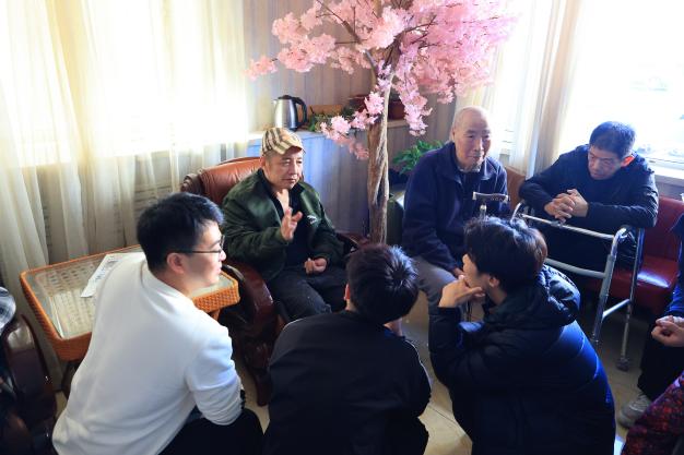 前期,志愿者们携带提前采购的水果、纸巾、消毒湿巾等慰问品于八点半在校门口集合,经约二十分钟步行抵达圣德兰老年公寓。公寓工作人员热情地欢迎志愿服务队的到来,并向同学们介绍了敬老院的基本情况。随后志愿者们分组前往公寓的一到四楼开展志愿活动。在公寓的一楼大厅和四楼房间内多是行动较为方便的老人们,志愿者们热情地与老人们围坐在一起聊家常,问候老人们的身体状况与公寓内的生活条件。由于住在二、三楼的老人们身体不方便,志愿者们也到老人们的房间床头表达了关心和问候。老人们亲切地分享了自己的生活感受,大家互相问候、唠唠家常,场面和谐温馨。在交谈中,志愿者们也不忘开展力所能及的志愿帮扶,向老人们介绍了智能手机的一些简单用法,帮助存在使用疑惑的老人答疑解惑。同时,志愿者们也广泛地进行了反诈骗宣传,提醒老人注意财产安全。同学们用朴实而真诚的言语和行动表达着对老人们的关爱。