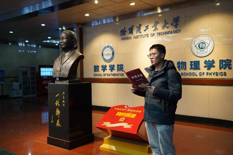 首先,全体师生在优秀员工代表杨杰的带领下,在理学楼一楼大厅“物穷其理”红色见学点进行了微团课学习,共同感悟洪晶先生始终淡泊名利、初心不改,永远听党话、跟党走的精神。