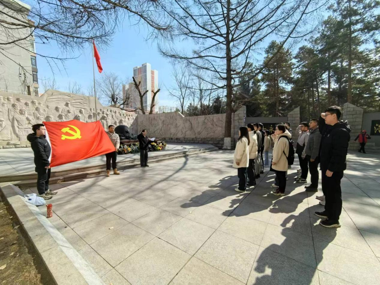 随后,员工党员们来到哈尔滨烈士陵园,在革命烈士纪念碑前进行清明祭扫活动。同学们手持黄白菊花,低头静立,向为中国的民族解放和人民革命事业英勇献身的革命先烈默哀。随后,员工党员们依次向革命烈士纪念碑敬献鲜花。接着,员工党员们在烈士纪念碑前重温入党誓词。