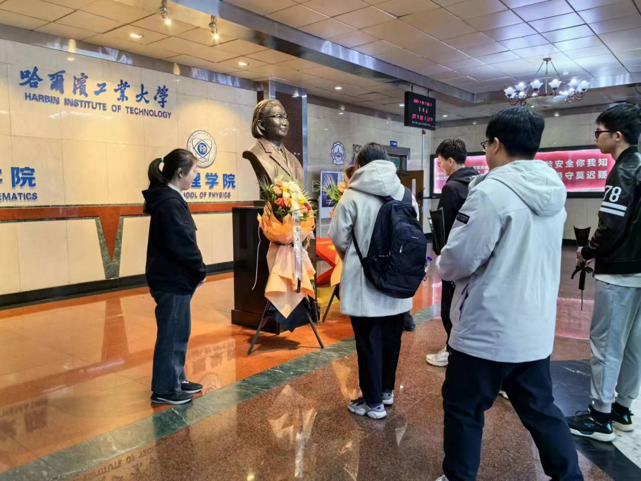 上午9时,党员同学们于理学楼洪晶先生雕像前开展祭扫活动。主持人吴瑶带领大家重温了学术大师的奋斗故事和许党报国之志,引导广大员工党员在哈工大“八百壮士”精神引领下砥砺奋进。接着,全体同学共同默哀,在肃穆的氛围中表达对洪晶先生的敬仰与哀思。