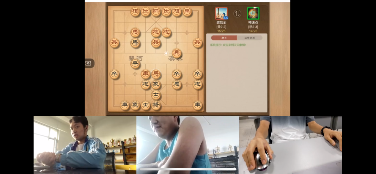 6月2日,一校三区总决赛以“线上对决+直播讲解”的方式进行,在一整天的比赛中,棋手们仔细观察着棋局,时而冥思苦想、时而快速走棋,看似云淡风轻,实则步步为营,展现出棋类运动的独特魅力。裁判、评论员侯成东对比赛进行了全程精讲、棋理战术分析,帮助线上观战者更好理解棋面局势。经过激烈角逐,来自深圳校区关文稻、校本部张赫、校本部韩子屿最终分别获得象棋、围棋和五子棋冠军。
