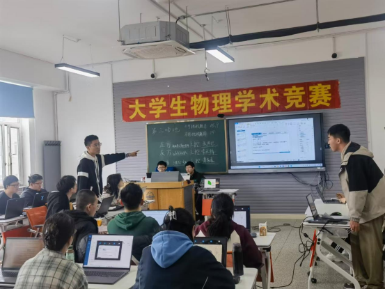 比赛正式开始后,各支队伍依次上台进行风采展示,随后各个队伍分别在正心楼四个赛场同时进行团队循环对抗赛。竞赛过程中,参赛队伍围绕17道开放性研究赛题,从理论、实验和仿真等方面研究进行报告和评述,参赛各方队伍展开激烈讨论,由教师和往届国赛获奖员工组成的评委会对同学们的研究报告及深入探讨进行了点评和指导。